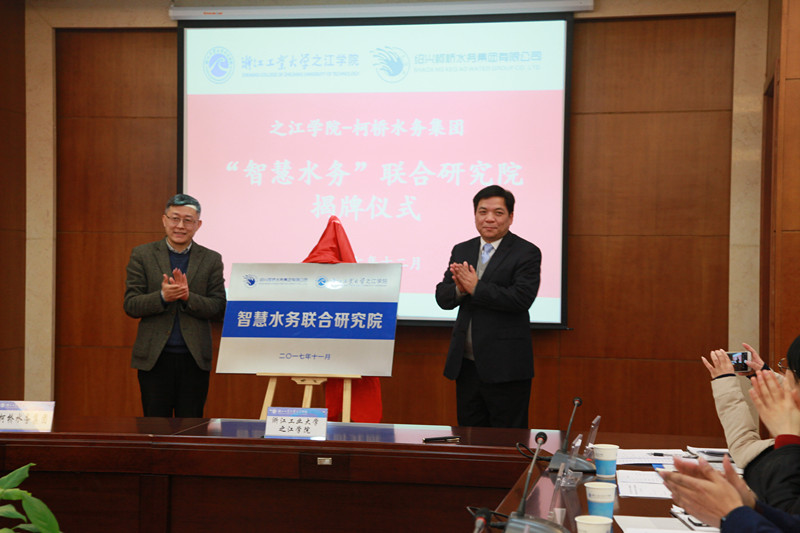 12月6日,柯橋水務(wù)集團(tuán)—浙江工業(yè)大學(xué)之江學(xué)院全面戰(zhàn)略合作簽約暨“智慧水務(wù)”聯(lián)合研究院揭牌儀式在之江學(xué)院行健樓舉行。集團(tuán)董事長(zhǎng)周儉、副總經(jīng)理馮梁峰和各部室及下屬各單位負(fù)責(zé)人,之江學(xué)院院長(zhǎng)李澎林、副院長(zhǎng)王河江等出席儀式。周儉、李澎林一起為“智慧水務(wù)聯(lián)合研究院”揭牌,并分別致辭;馮梁峰、王河江分別代表雙方簽署合作協(xié)議。