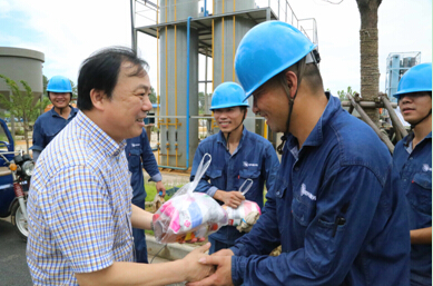 723,集團黨委副書記高小林到公司中試現場及泥處理車間慰問一線職工,送上毛巾、消暑飲料等防暑用品。