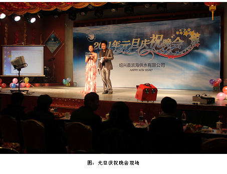 為增強青年員工的凝聚力,鼓勵職工以嶄新的姿態迎接新年的到來,濱海水司團總支于2010年12月30日晚,在市區稽山賓館舉行濱海水司團總支2010元旦文藝晚會。本次晚會邀請了集團領導高小林、馮梁峰及多名兄弟單位領導出席并擔任晚會評委。