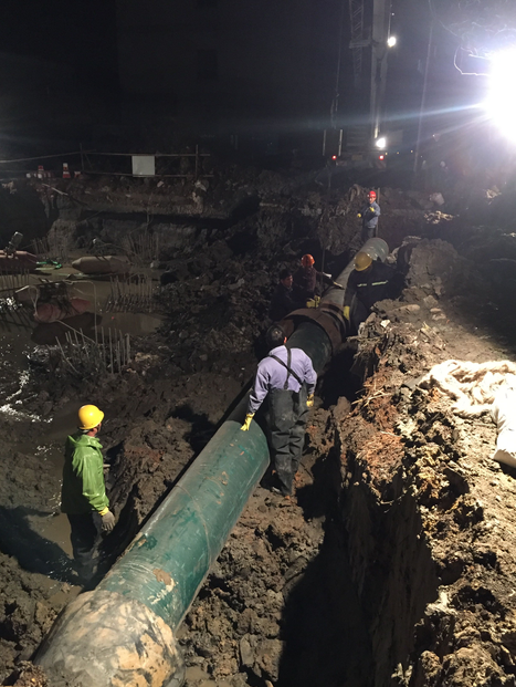 從傍晚18:00開始,搶修人員不畏寒冷,齊心協(xié)力,經(jīng)過6個多小時的不停奮戰(zhàn),在凌晨0點左右,搶修工作全部并恢復(fù)供水。此次搶修因組織方案得力,材料準備充分,把因停水造成的損失降到了最低,以實戰(zhàn)促練兵,達到了滿意的效果。